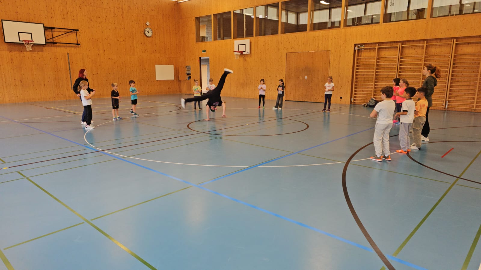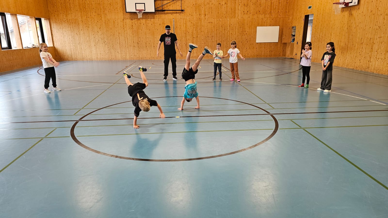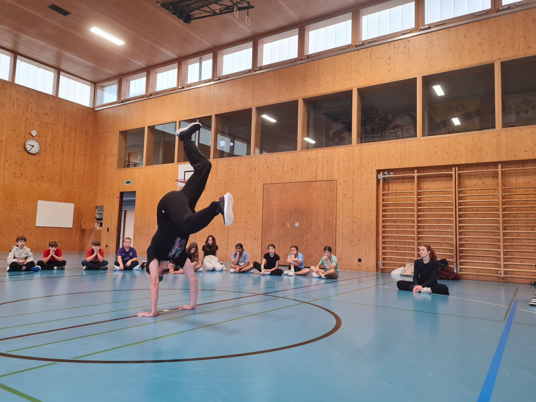 Am 16. Oktober war der Schweizer Profi-Breakdancer Michael Reichert bei uns an der Schule zu Gast und begeisterte die Kinder mit seinem Können. Als Teil der Hip Hop Kultur ist Breakdance eine Tanzart für alle, die von einfachen Bewegungen bis hin zu akrobatischen Kunststücken alle Niveaus abdeckt.