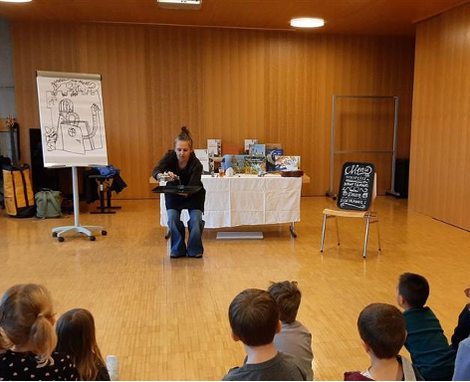 Am Nachmittag des 27. November verwandelte sich die Aula der Schule Veltheim in ein lebendiges Restaurant – zumindest in den Köpfen der kleinen Zuhörerinnen und Zuhörer. Die Kulturvereinigung „Välte läbt“ hatte für den Kindergarten und die 1. Primarklasse eine interaktive Lesung mit der beliebten Autorin Regi Widmer organisiert. Frau Widmer entführte die Kinder mit ihrem Buch „Willkommen im Restaurant“ in eine Welt voller kulinarischer Abenteuer. Die Atmosphäre war voller Begeisterung – und das nicht nur wegen der fantasievollen Handlung, sondern auch wegen der lebendigen Art, wie die Autorin die Kinder einband. Die Kinder hörten